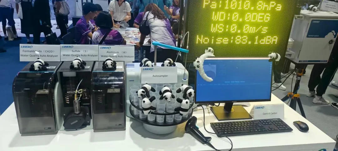 現場亦展示了力合科技自主研發的自動化監測水質分析「實驗室」實物。當水樣注入後,儀器自動完成反應、檢測全流程,透過電腦螢幕可查看 COD、氨氮、總磷、重金屬等多項污染物濃度指標。搭配動畫演示的污染應急技術,觀衆得以完整理解力合科技如何運用先進生態環境監測儀器,進而實現水污染治理升級之路,吸引大批參觀者駐足體驗。