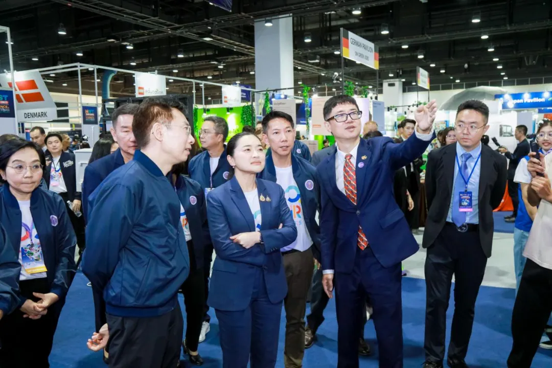 泰國高等教育與科研創新部部長Sudawan Wangsuphakijkosol專程造訪展區,對中國在生態環境領域所取得的成就給予高度評價,並期待中泰進一步深化環保科技合作,發揮力合科技的技術力量,共同促進區域綠色發展。
